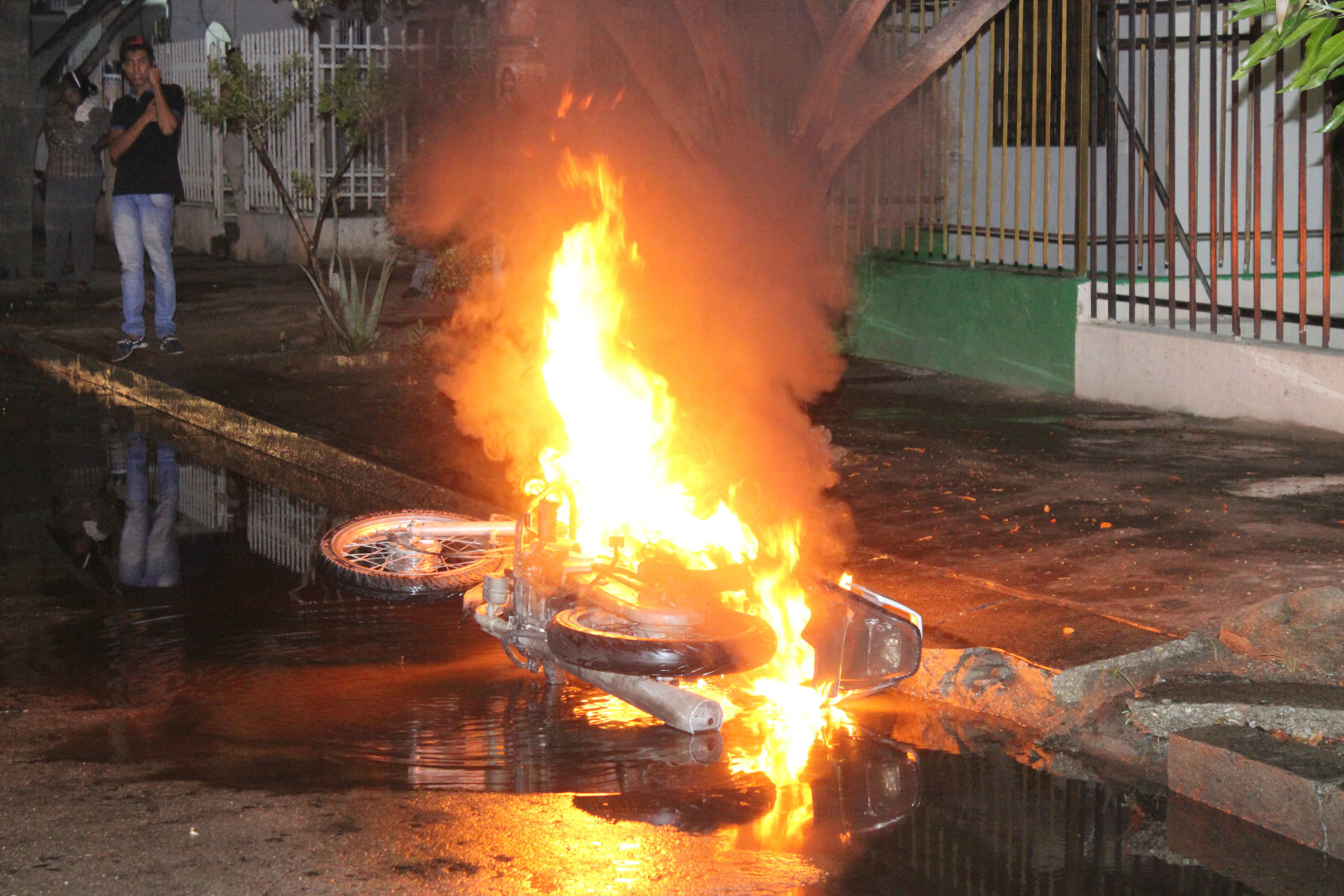 Comunidad prendió fuego a moto de atracadores en La Ciudadela