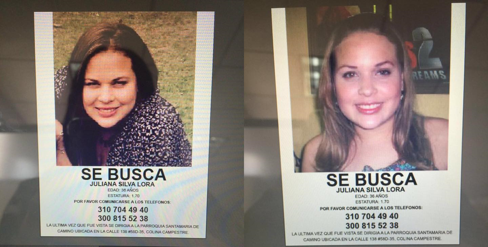 Al momento de su desaparición Juliana Silva vestía un jean azul, chaqueta negra y tenis gris. La información del paradero de la joven se puede dar a conocer a su familia a través de los teléfonos 3008155248/3008151410