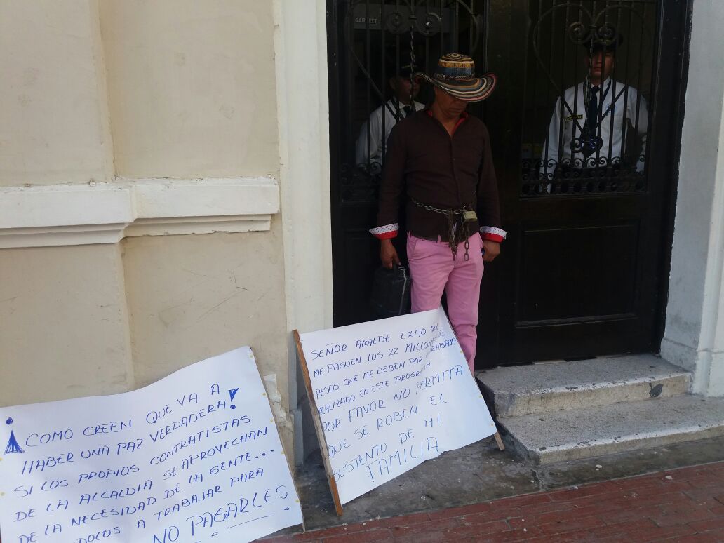 Metrópolis Hombre se encadena a la Alcaldía y amenaza con incinerarse Published 9 años ago on 11 mayo, 2017 By Opinión Caribe El señor Manuel Martínez desde tempranas horas de este jueves, lleva encadenado a la puerta de la Alcaldía distrital, donde exige el pago por su trabajo. Temas relacionados: También puede gustarte Click to comment You must be logged in to post a comment Login Leave a Reply Cancelar la respuestaLo siento, debes estar conectado para publicar un comentario.