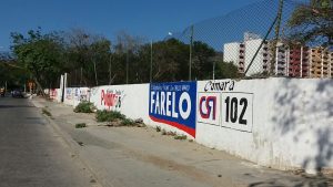 El emblemático Estadio Eduardo Santos que albergó por años al equipo Unión Magdalena, hoy parece el mural de los avisos de las actuales campañas políticas. Los colores de los avisos que ensombrecen el estadio, se convierten en contaminación visual para los samarios y visitantes de este territorio, además de una clara violación del Decreto 025 del pasado 22 de enero, que regula este tipo de publicidad.