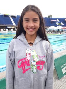 La joven deportista participó en las categorías de 50 metros espalda, 400 metros libres, 50 metros libres, 50 metros pecho y 200 metros combinados. En este evento participan cerca de 370 deportistas de todo el país en categorías infantiles, que ya terminaron competencia, y juveniles que están por iniciar.