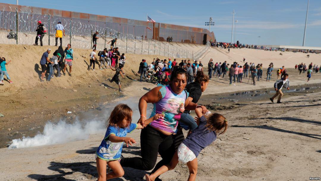 Un grupo pequeño de los manifestantes se desligó de la marcha y se dirigió cerca al canal entre Tijuana y San Diego que lleva a la valla fronteriza. Allí se encontraron con botes de gas lacrimógeno que, según informaron Reuters y The Associated Press, fueron disparados por agentes de la Agencia de Protección Fronteriza y Aduana de EE.UU (CBP, por sus siglas en inglés). Entre las personas que recibieron el gas había mujeres jóvenes y niños.