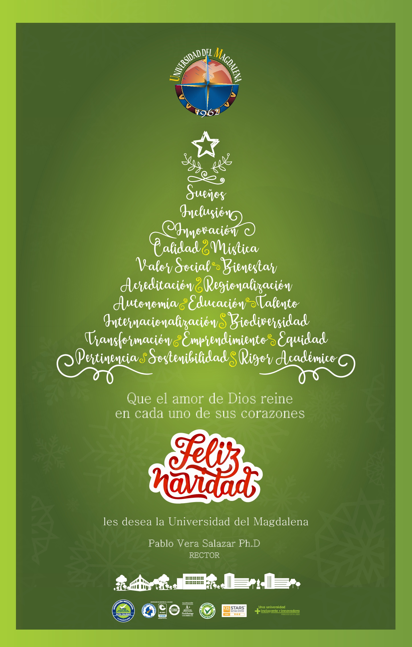 La Universidad del Magdalena hace extensivo su saludo de amor, paz e inclusión para esta navidad, deseando a todos sus grupos de interés que el amor de Dios reine en cada uno de sus corazones.
