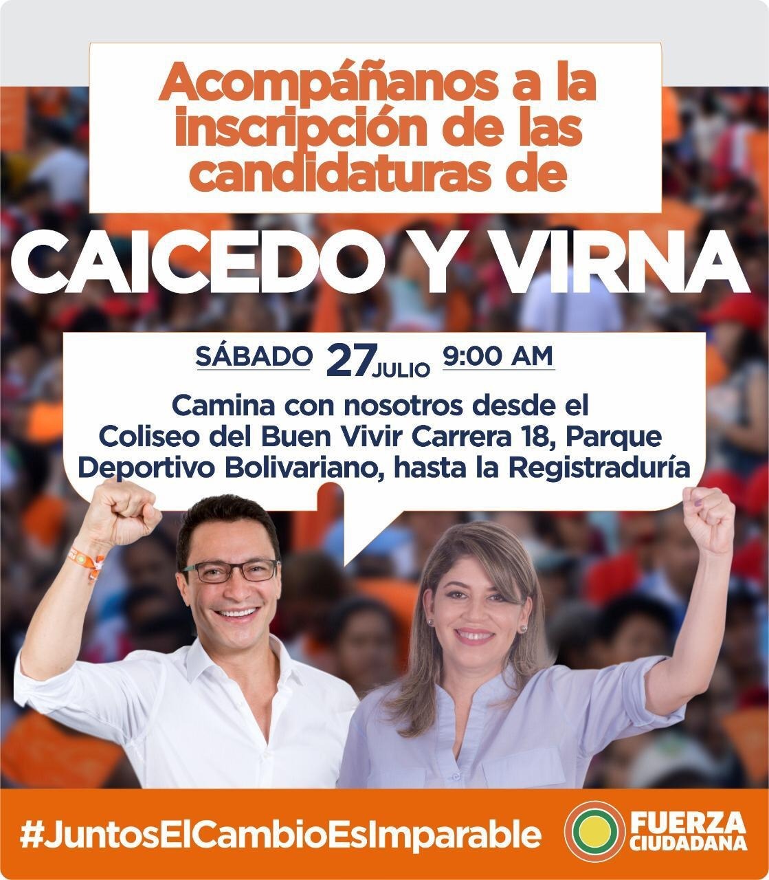Por fuentes extraoficiales pero muy cercanas al corazón del grupo significativo ciudadanos Fuerza Ciudadana, se pudo establecer que mañana a las 9:00 a.m. los candidatos por esta colectividad iniciarán su recorrido hacia la Registraduría para entregar las firmas y darle oficialmente inicio a su campaña por la Alcaldía de Santa Marta con Virna Johnson, la Gobernación del Magdalena con Carlos Caicedo.