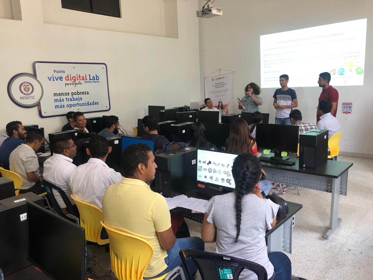 En las instalaciones del Punto Vive Digital Lab de la Gobernación del Magdalena, La Cámara de Comercio de Santa Marta para el Magdalena en convenio con el SENA brindan diplomados en Formación Continua Especializada, que benefician de manera gratuita a emprendedores del Magdalena.