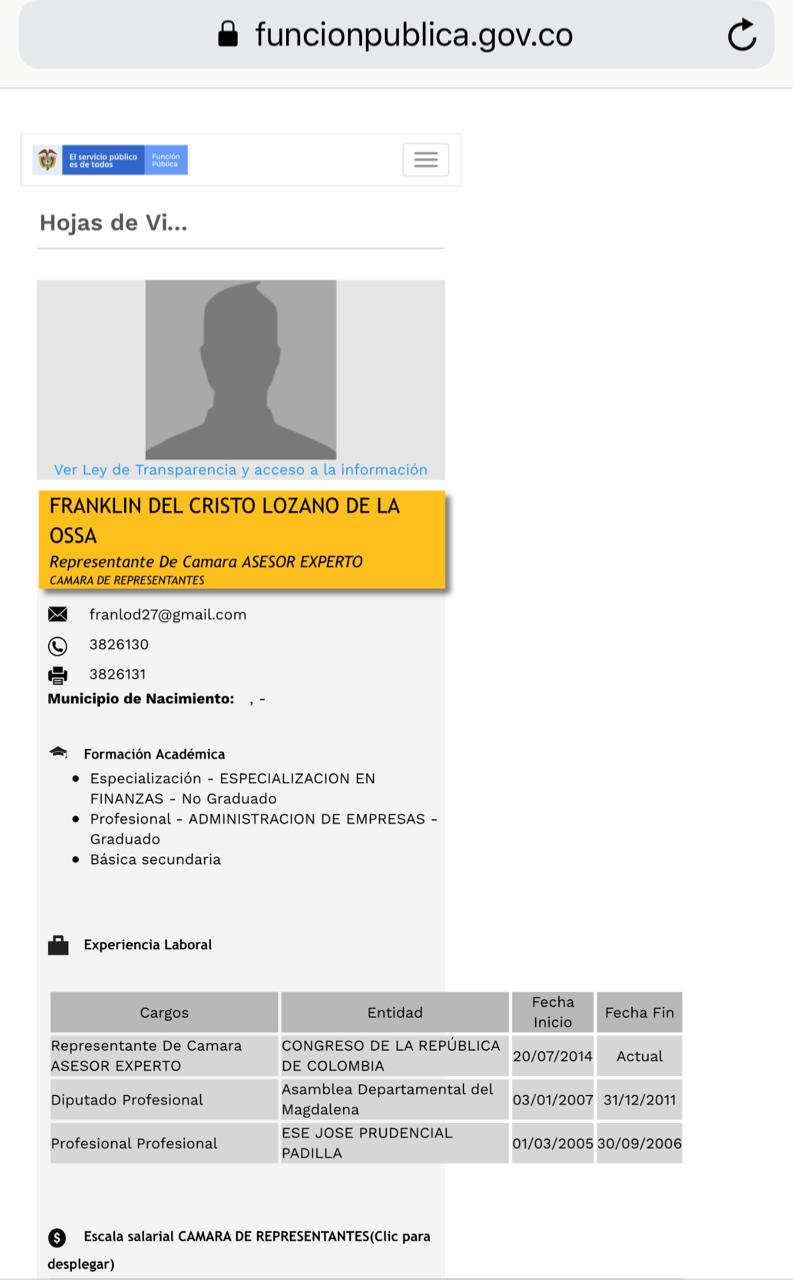 Luego de conocerse a través de algunas noticias que el representante a la Cámara por el departamento del Magdalena, Franklin Lozano, habría “inventado” un posgrado, este señaló que la información es absolutamente falsa.