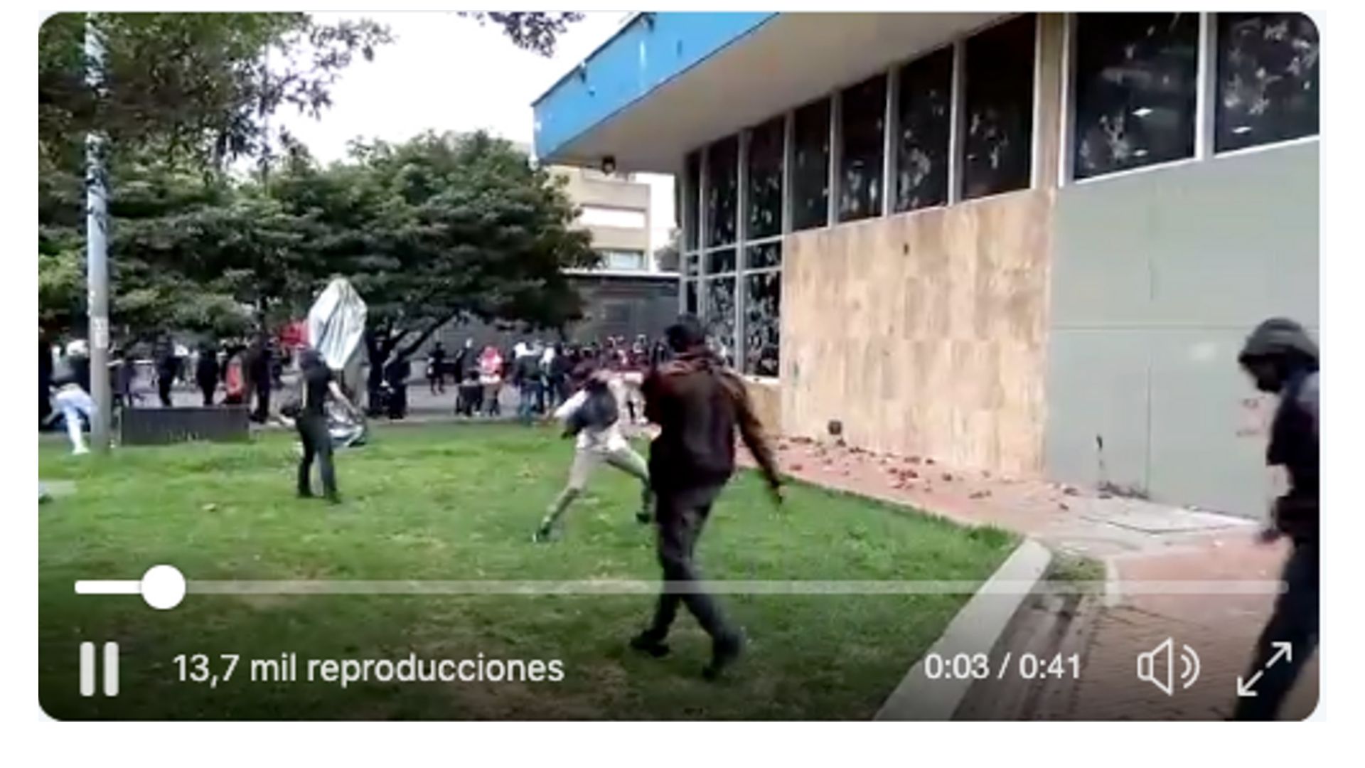 Los ataques a la infraestructura del edificio se generaron después de las 4 p.m., al mismo tiempo que en diferentes partes del centro de Bogotá avanzaban las protestas estudiantiles contra la corrupción en las universidades públicas.