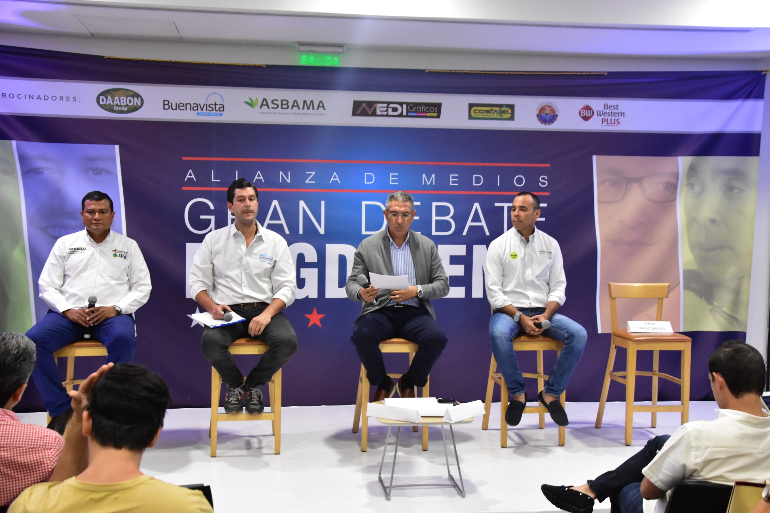 tres de los cuatro candidatos a la Gobernación del Magdalena participaron del debate ‘Gran debate Magdalena’ organizado por medios de comunicación digitales de Santa Marta, unidos para que los magdalenenses conocieran a los candidatos que desean ocupar el primer cargo del Departamento, sus propuestas y futuras obras de infraestructura, salud, educación, empleo, entre otras.