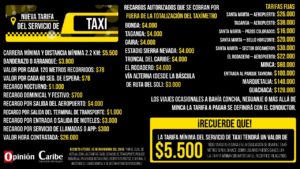 Esta es la lista actualizada de tarifas para el servicio de taxi en Santa Marta