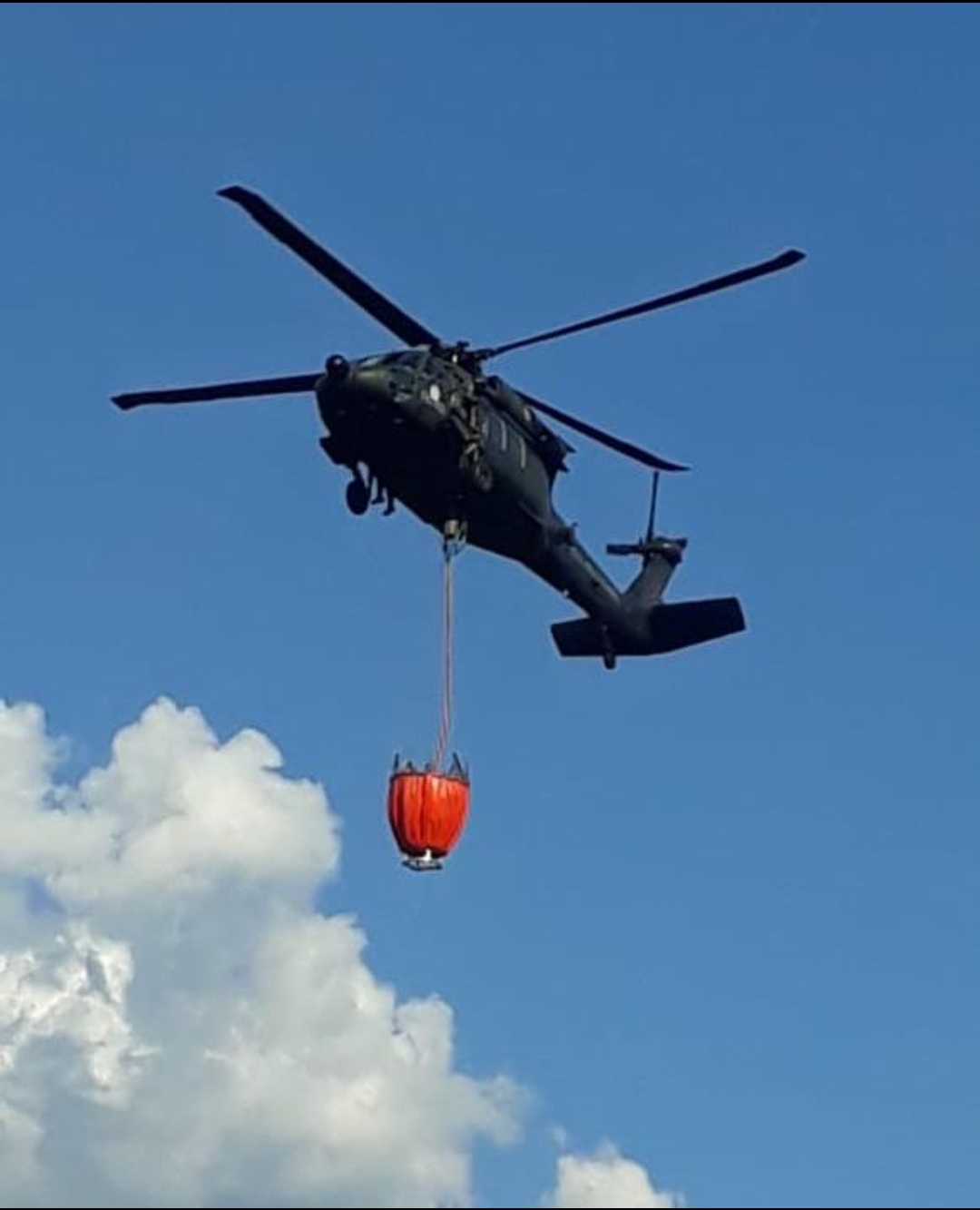 La Fuerza Aérea, dispuso de un helicóptero ‘Black Hawk’ con sistema Bamby Bucket, para que la noche de ayer iniciaran las descargas a fin de controlar los incendios forestales en el Magdalena.