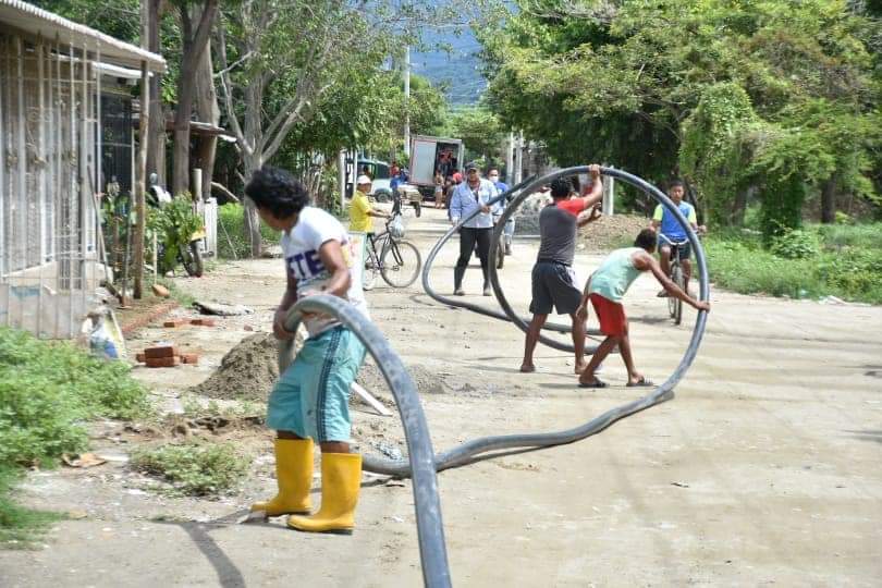 Cumpliendo las directrices del alcalde Luis Alberto Tete Samper, a través de la Secretaría de Infraestructura y con el apoyo de la comunidad, se están realizando las obras de drenaje en la cancha del barrio El Poblado.