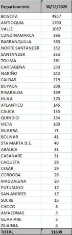 En cuanto a los fallecidos, el Ministerio de Salud informó que en la tarde de hoy Colombia registró 289 personas fallecidas, es decir, 42.909 muertes en total.