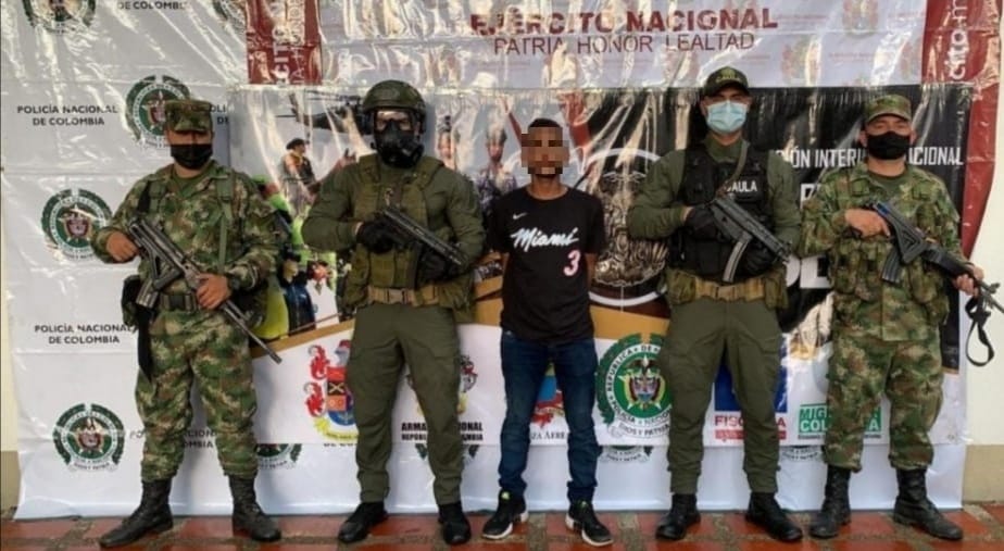 Mediante labores de inteligencia realizadas por el Batallón de Alta Montaña N.°6, se logó establecer la ubicación exacta de este sujeto, quien es señalado de ser el jefe de seguridad de alias Muñeca, presunto cabecilla de la organización criminal, así como de realizar al parecer acciones terroristas en contra de la población civil sobre la Troncal del Caribe.