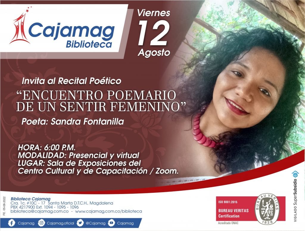 La Biblioteca Cajamag realizará este viernes 12 de agosto a las 6:00 de la tarde el recital de poesía denominado Encuentro Poemario de un Sentir Femenino.