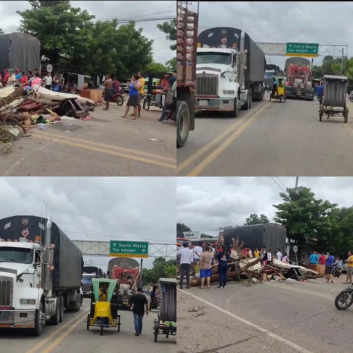 En un reporte de la Policía Nacional se conoció que la Vía Nacional está bloqueada en cuatro sectores, que son la línea Férrea Perímetro Urbano; en el kilómetro 28 de la vía Pueblo Nuevo – Valledupar; en el kilómetro 1 de la vía Bosconia – Rio Ariguaní y en el kilómetro 1 de la vía San Roque – Bosconia.
