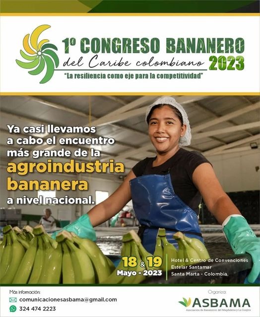 Se acerca el 1er Congreso Bananero del Caribe colombiano 2023, evento a través del cual se pretende seguirlo institucionalizando como un espacio para el análisis, la reflexión y la generación de aportes significativos sobre temas y problemáticas relevantes de este trascendental renglón productivo.