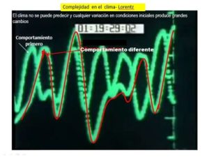 Como señalaría más tarde, en lo que se denominó el «efecto mariposa», la extrema sensibilidad a las condiciones iniciales significaba que el aleteo de las alas de una mariposa sobre el Amazonas podría influir en el clima en China. Este fenómeno, iniciado por Lorenz y otros, ha encontrado una aplicación generalizada como caos determinista.
