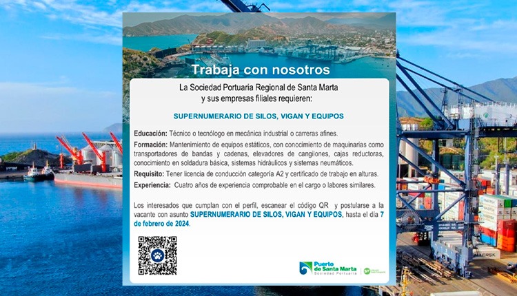 La Sociedad Portuaria Regional de Santa Marta y sus empresas filiales requieren un Supernumerario de silos, vigan y equipos.