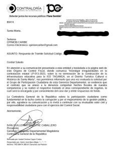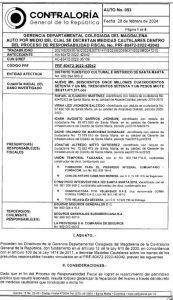 “ORDENAR la apertura del PROCESO DE RESPONSABILIDAD FISCAL No. PRF-80472-2022-42042, por los presuntos hechos irregulares lesivos al patrimonio público aquí expuestos, teniendo como entidad afectada al DISTRITO TURÍSTICO CULTURAL E HISTÓRICO DE SANTA MARTA, conforme a la parte motivadora de la presente providencia”, indicó la Contraloría General de la República.
