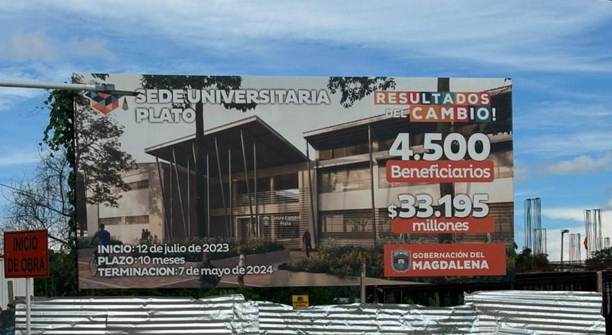 El 17 de mayo de 2023, el exgobernador del departamento del Magdalena, Carlos Caicedo, colocó la primera piedra de la obra de la Sede Universitaria en el municipio de Plato. Con una inversión de más de 33 mil millones de pesos, esta obra se inició el 12 de julio de 2023 con un plazo de 10 meses.