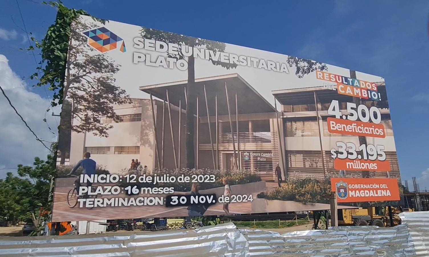 Así las cosas, esta obra, según su valla publicitaria, inicialmente debía entregarse el 7 de mayo de 2024 según lo estipulado. Sin embargo, el lunes 22 de julio de 2024, OPINIÓN CARIBE, en cumplimiento del deber periodístico, se trasladó hasta el municipio de Plato, Magdalena, para verificar el estado de esta obra que debía estar lista para el disfrute de los 4.500 beneficiarios estipulados en este proyecto de la Gobernación del Magdalena, en cabeza del exgobernador Carlos Caicedo.