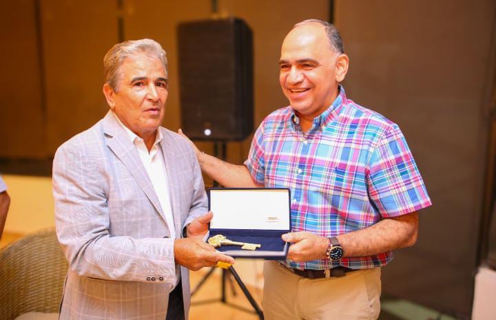 El Alcalde de Santa Marta entrega las llaves de la ciudad a Jorge Luis Pinto, reconociendo su trayectoria y los triunfos con el Unión Magdalena