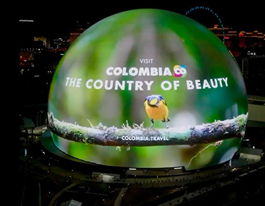 La campaña comenzó en la Exosphere, uno de los lugares más emblemáticos en ese país. Se trata de una multicolor que proyecta un video que sigue el vuelo de un ave migratoria a través de destinos icónicos como el Tayrona, Cartagena, Caño Cristales y el Valle del Cocora, entre otros.