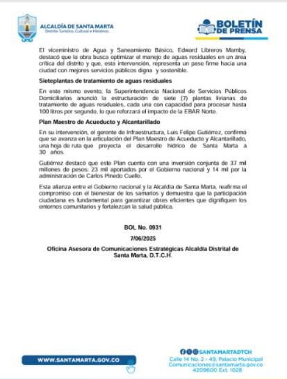 Esta alianza entre el Gobierno nacional y la Alcaldía de Santa Marta, reafirma el compromiso con el bienestar de los samarios y demuestra que la participación ciudadana es fundamental para garantizar obras eficientes que dignifiquen los entornos comunitarios y fortalezcan la salud pública.