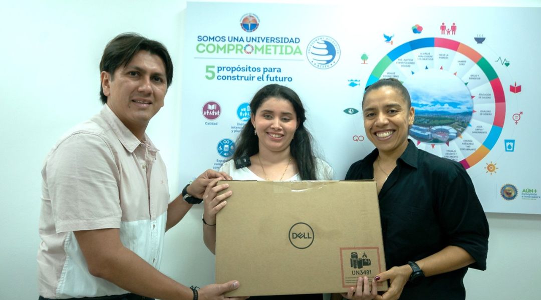 El dispositivo fue otorgado por la Vicerrectoría Administrativa y con el apoyo de la Dirección de Desarrollo Estudiantil se busca que la estudiante supere las barreras tecnológicas y continúe su formación en el marco de una educación de calidad.