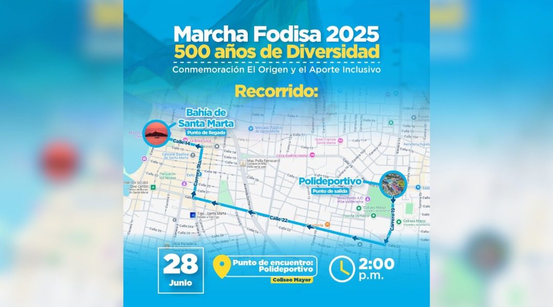 Este 28 de junio en Santa Marta se realizará la Marcha Fodisa 2025 para conmemorar el Día Internacional del Orgullo LGBTIQ+. Este evento, que lleva como lema “500 años de diversidad”, es organizado por la Corporación Diversa del Magdalena, en articulación con la Mesa de Identidad de Género y Cuerpos, con el apoyo institucional de la Alcaldía de Santa Marta.