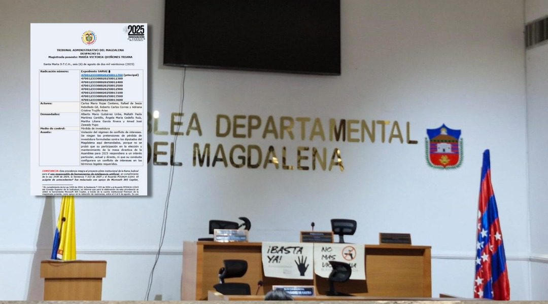 El Tribunal Administrativo del Magdalena rechazó las solicitudes de pérdida de investidura presentadas contra los diputados Alberto Mario Gutiérrez Uribe, Mallath Paola Martínez Cantillo, Ángela María Cedeño Ruiz, Martha Liliana García Rivera y Amed José Zawady Pupo, quienes fueron señalados de violar el régimen de conflicto de intereses al participar en la elección de la mesa directiva de la Asamblea Departamental para el periodo 2025.