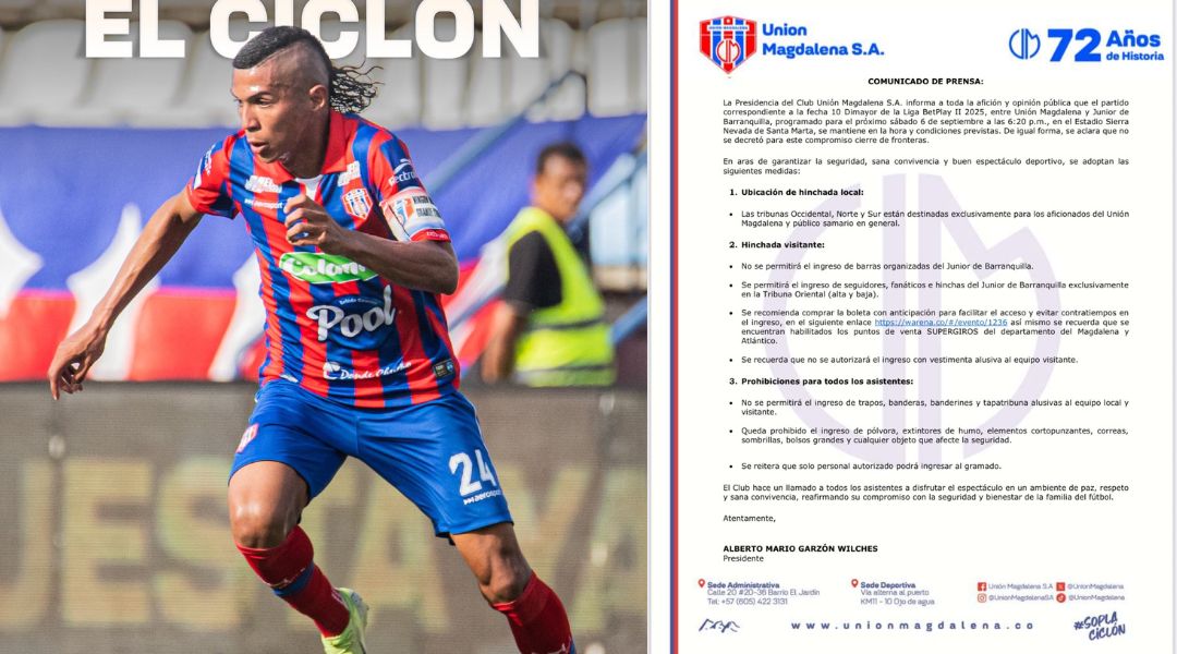 El presidente de Unión Magdalena, Alberto Mario Garzón Wilches, enfatizó que el compromiso se mantiene “en la hora y condiciones previstas” y aclaró que no se decretó cierre de fronteras para este clásico.