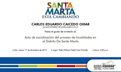 Como se recordará, en su Plan de Desarrollo 2012-2015, “Equidad para Todos, Primero los Niños y las Niñas”, anunció en su eje 5, Santa Marta, Distrito....