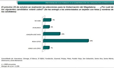 El próximo 25 de octubre se realizarán las elecciones para la Gobernación del Magdalena, Opinión Caribe da a conocer está encuesta que preguntó a los samarios...