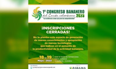 La Asociación de Bananeros del Magdalena y La Guajira (Asbama), informa que las inscripciones para el 1er Congreso Bananero del Caribe colombiano se encuentran cerradas. “Hemos...