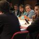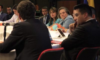 La ministra de Trabajo, Clara López, los representantes del gremio de empresarios y los sindicatos de trabajadores están reunidos desde el lunes en la Biblioteca Luis...